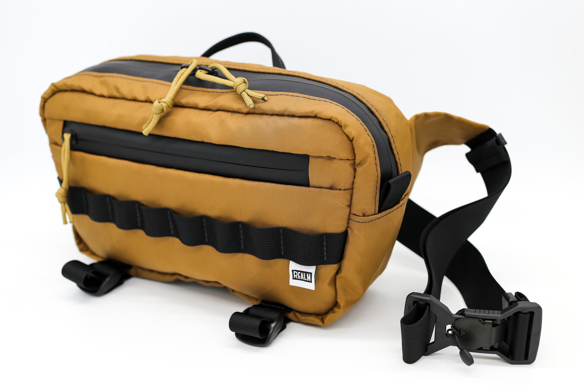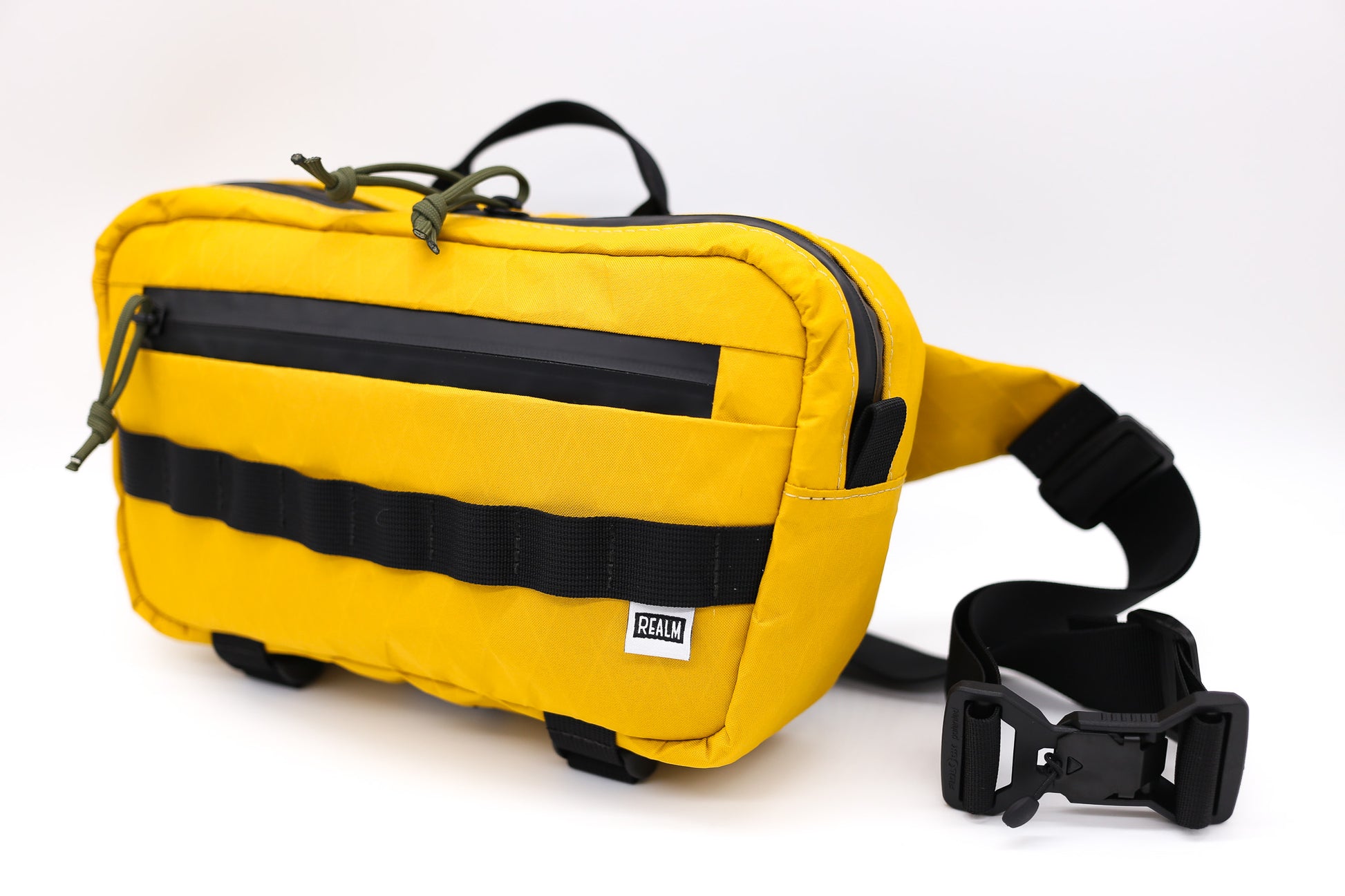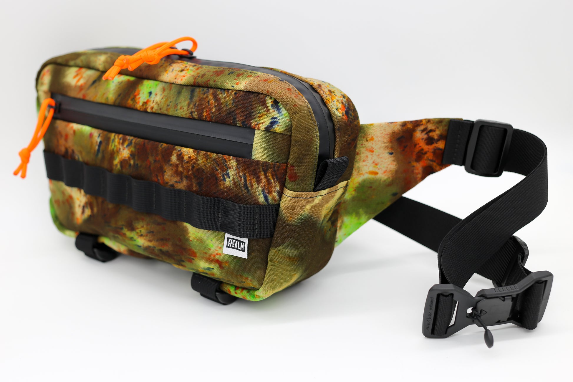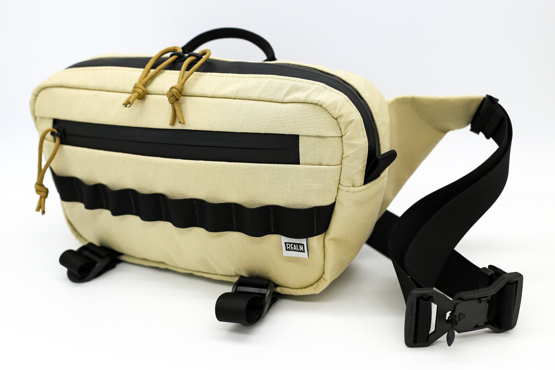 Hip pack/crossbody bag made with fabric options like Realm-exlusive hand dyed organic cotton XPAC, recycled ECOPACK, and more.