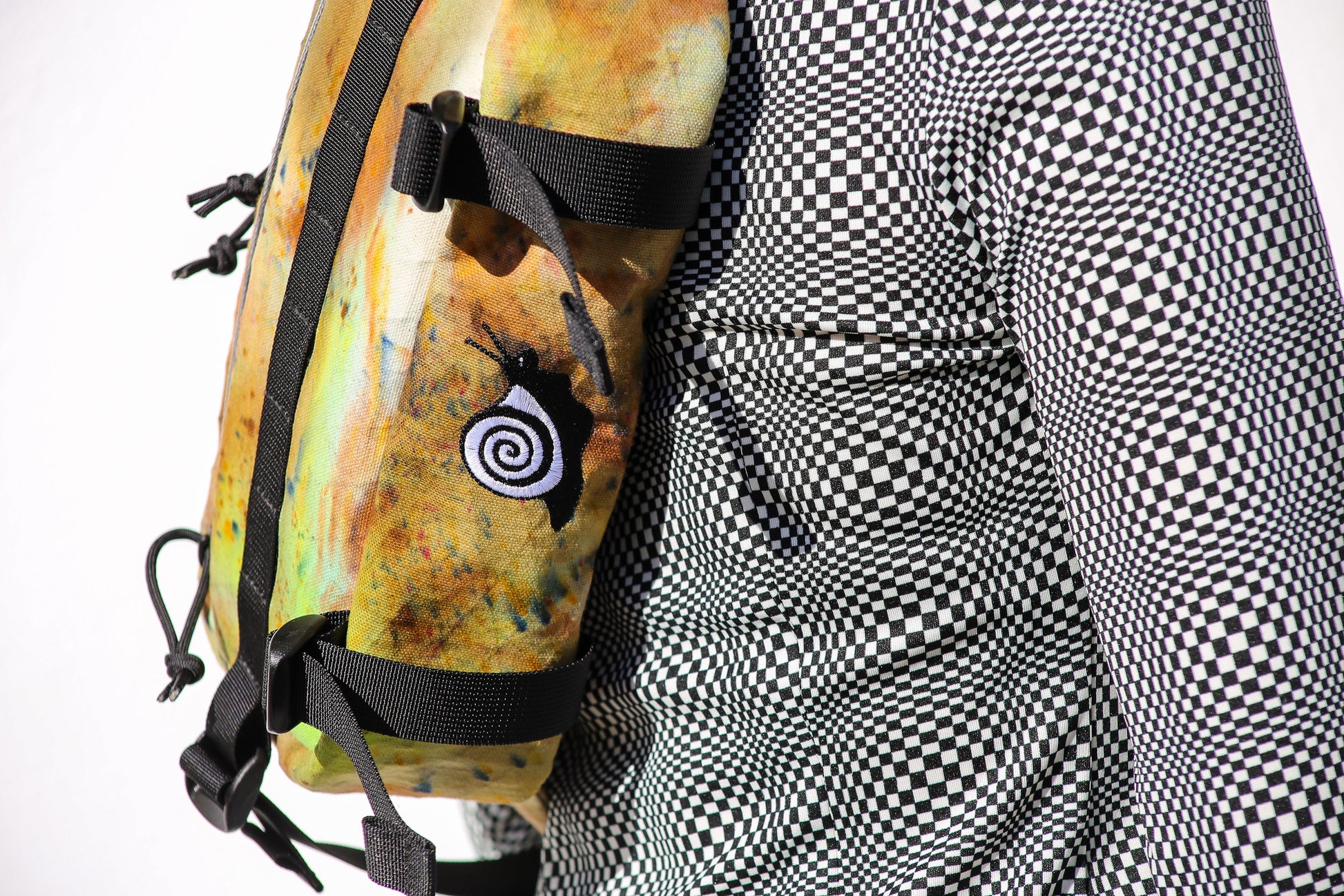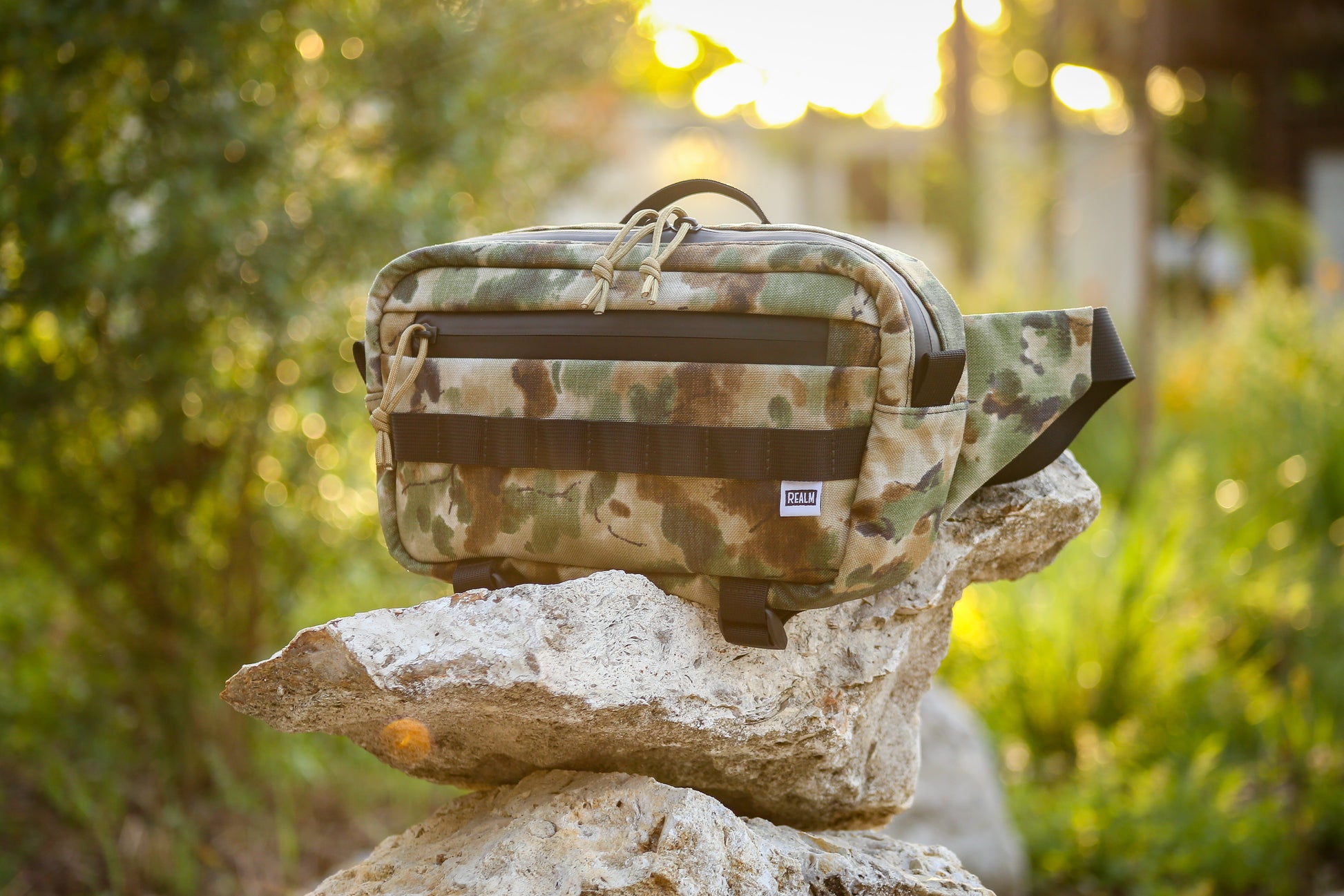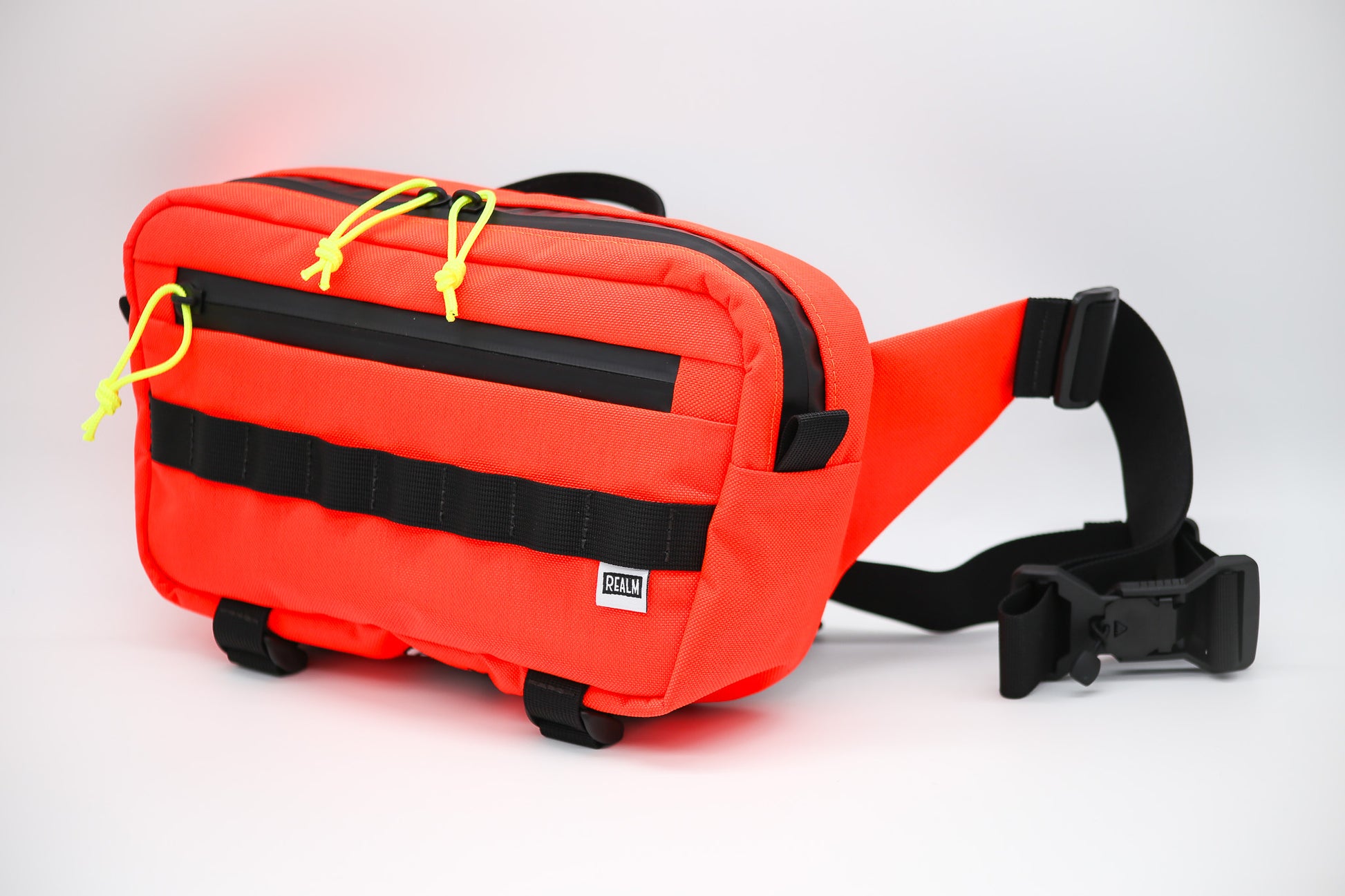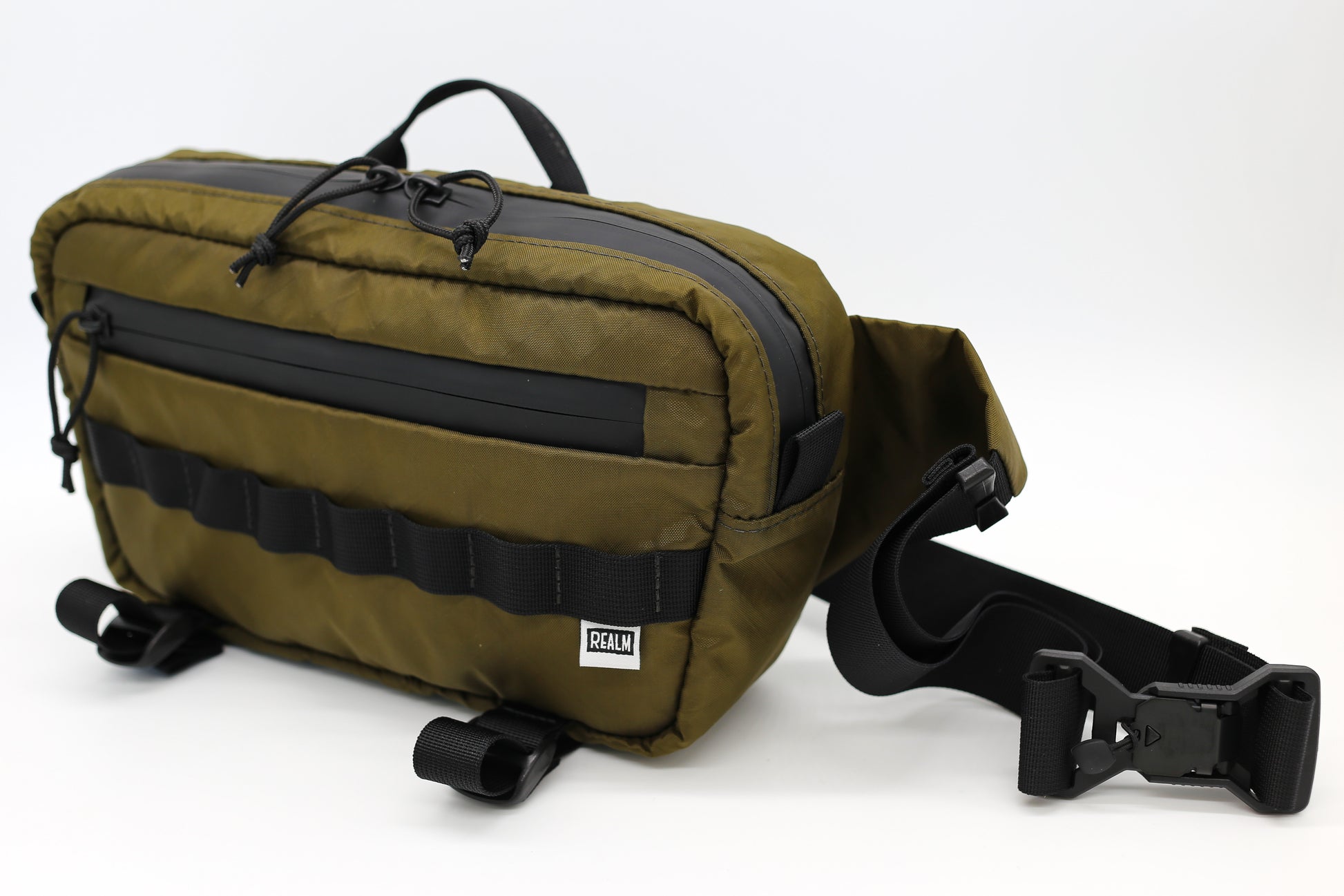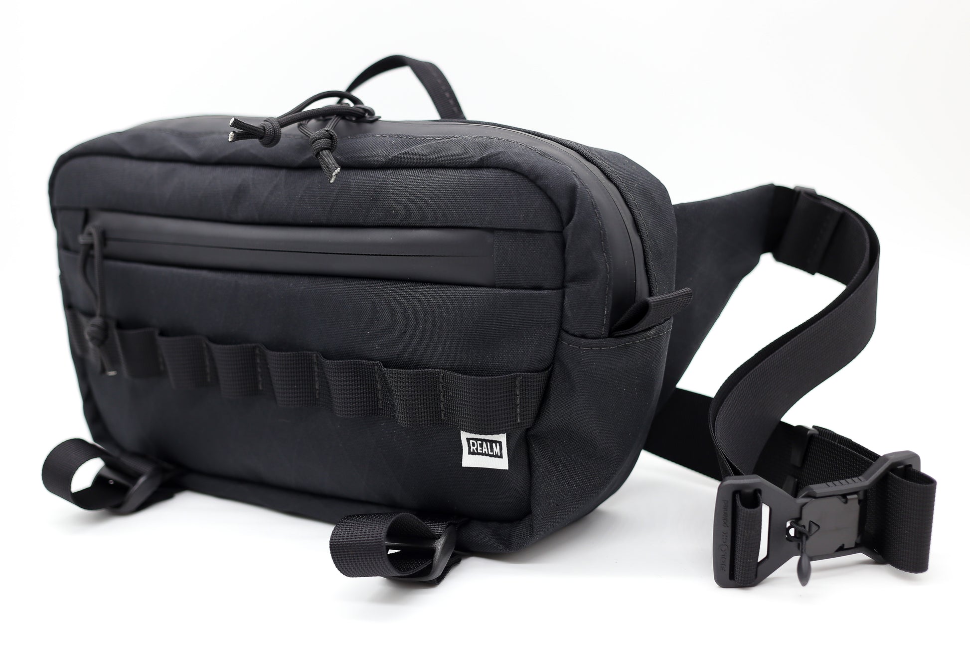 Hip pack/crossbody bag made with fabric options like Realm-exlusive hand dyed organic cotton XPAC, recycled ECOPACK, and more.